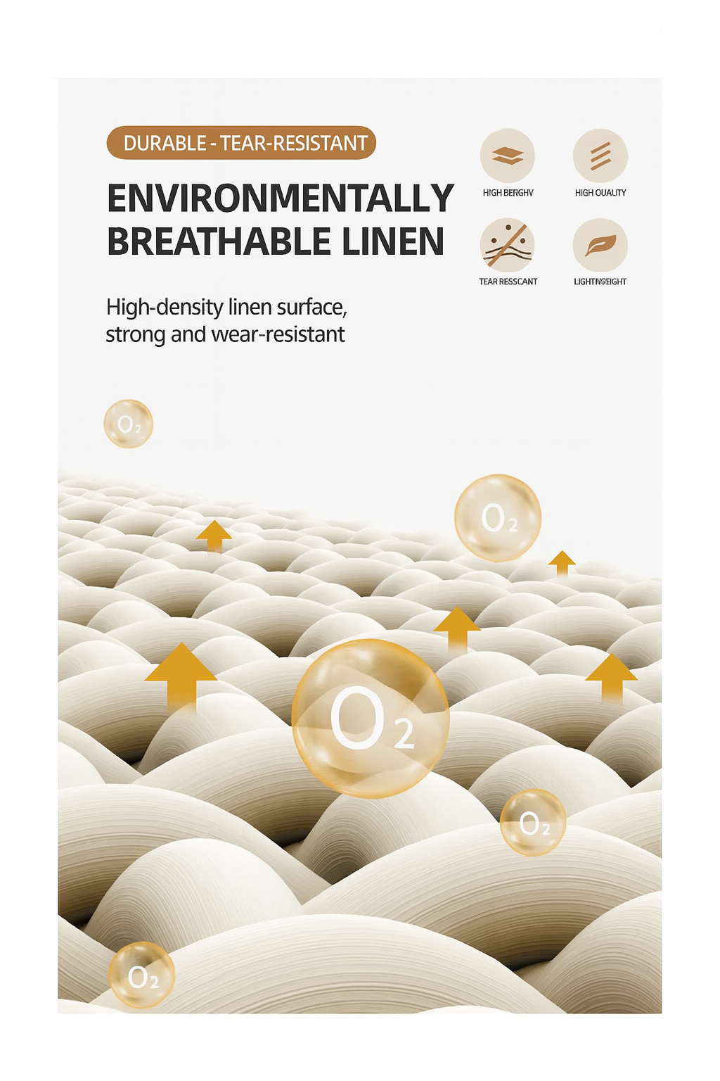 Engineered with high-density woven technology, this eco-conscious linen fabric is designed to offer durability, breathability, and comfort—perfect for everyday furniture use.